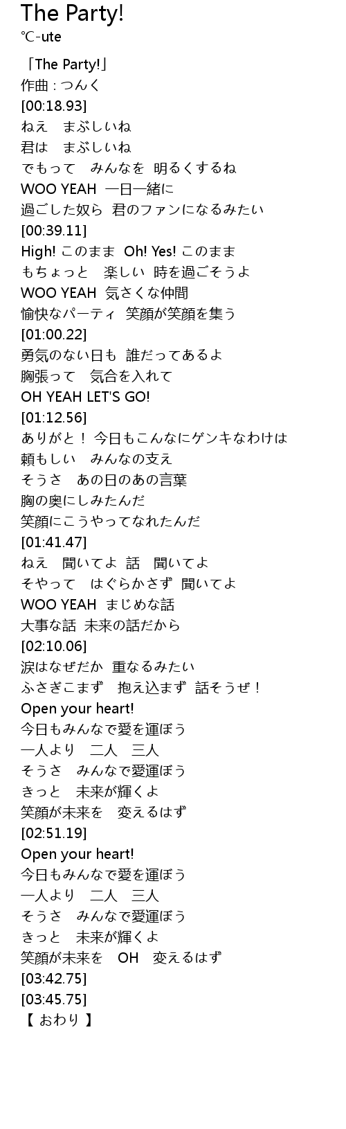 | [00:01.93] | 「The Party!」 |