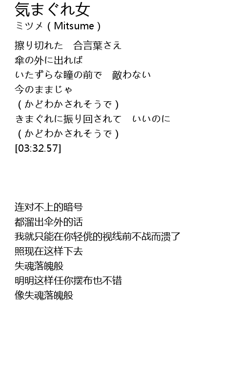 | [00:40.25] | いたずらな瞳の前で 敵わない |