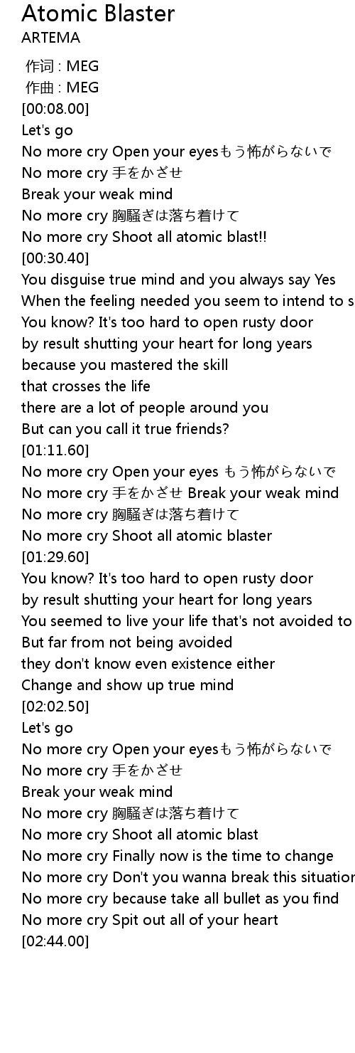 | [02:20.60] | No more cry Shoot all atomic blast |