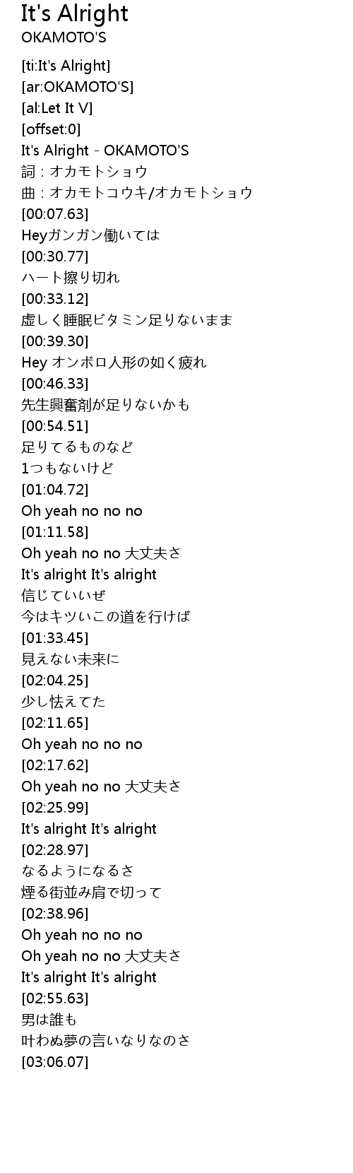 | [00:01.72] | It' s Alright OKAMOTO' S |