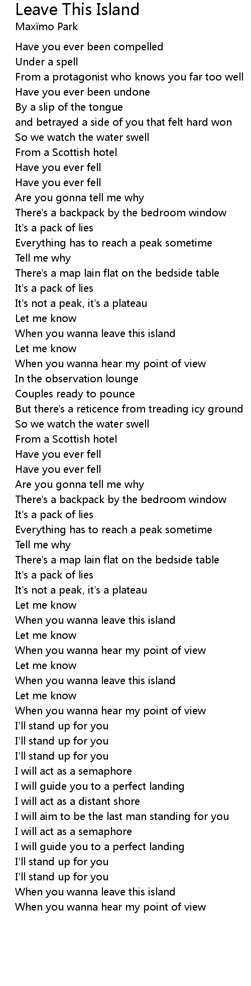 When you wanna leave this island |