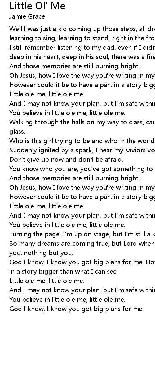 And I may not know your plan, but I'm safe within Your hands, cause I know that You believe in little ole me, little ole me. |