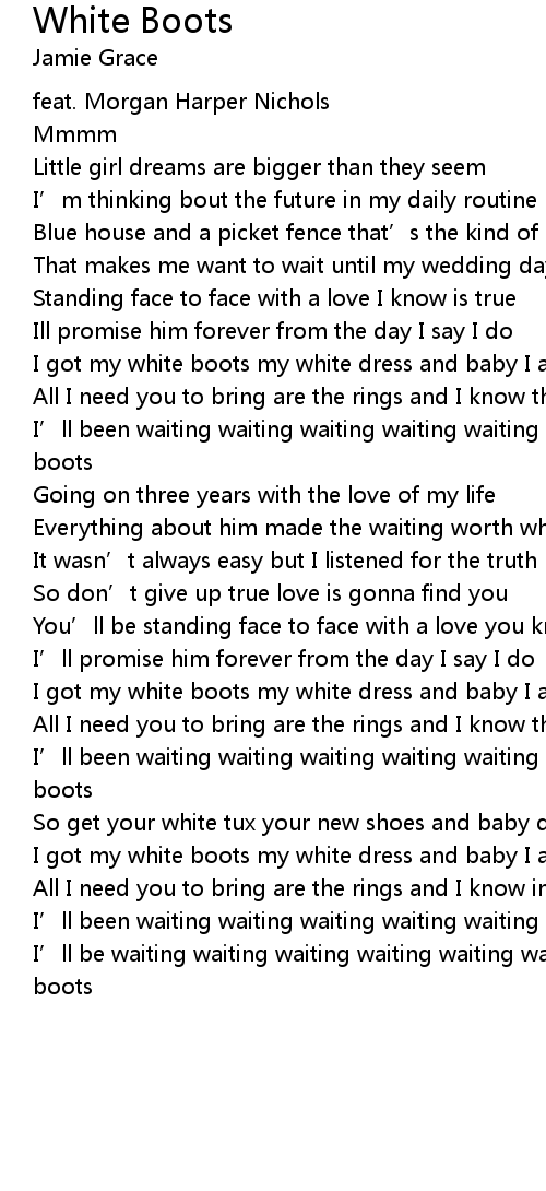 | I’ll been waiting waiting waiting waiting waiting waiting on you in my white boots | |