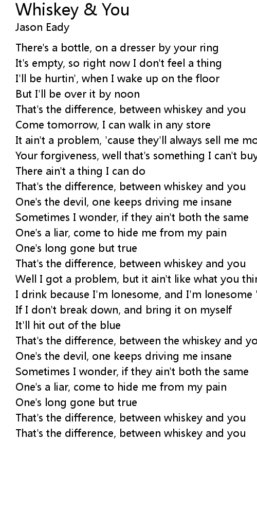 That's the difference, between whiskey and you |