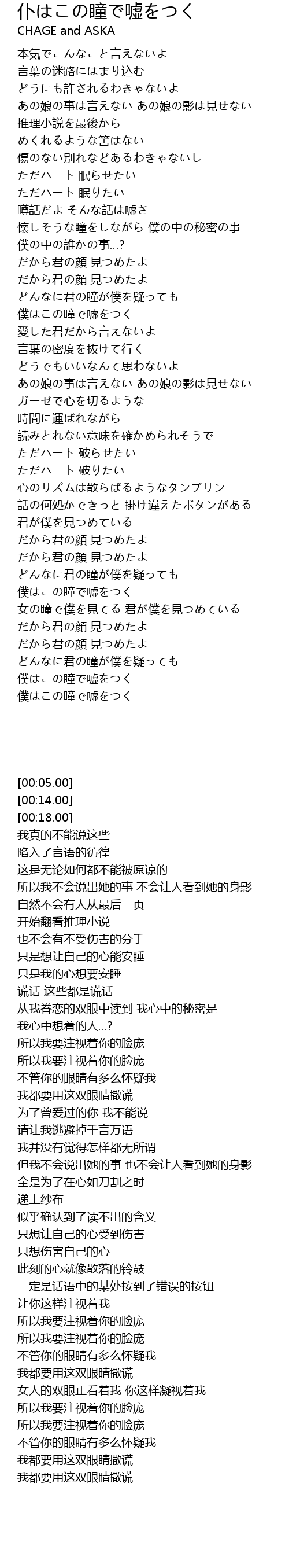 | Song | 仆はこの瞳で嘘をつく |