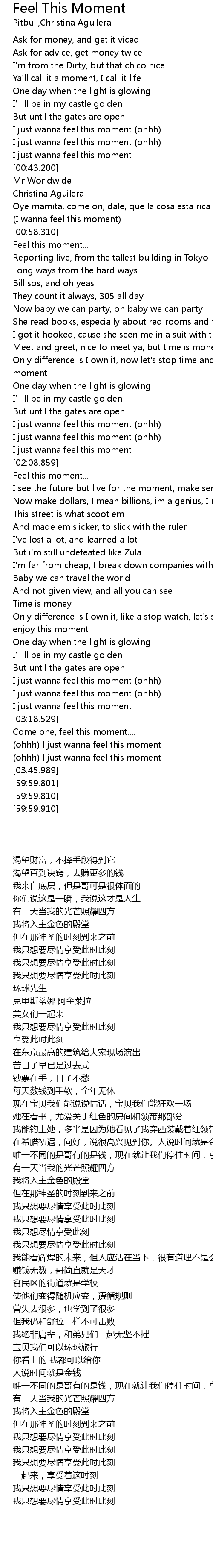 | [02:59.929] | I just wanna feel this moment (ohhh) |