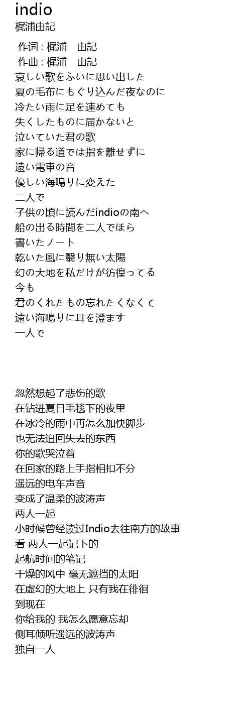 | [02:46.707] | 子供の頃に読んだindioの南へ |
