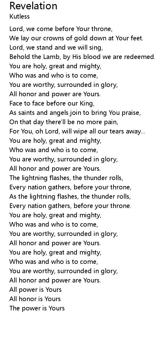 | All honor and power are Yours. | |