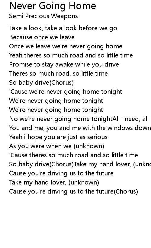 So baby drive(Chorus)Take my hand lover, (unknown) |