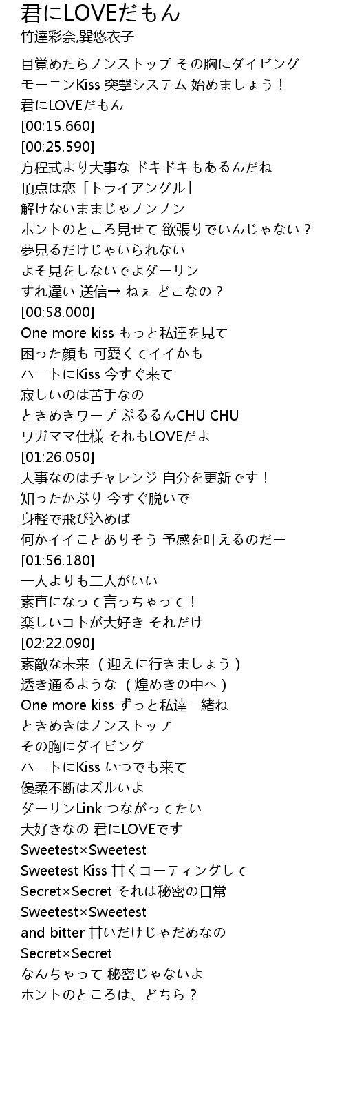 | [00:13.890] | 君にLOVEだもん |