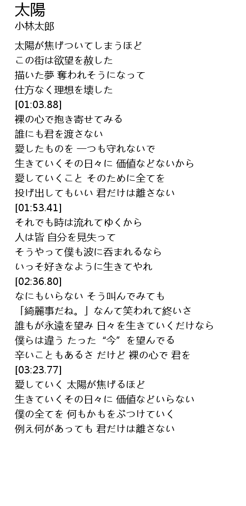 | [03:24.27] | 愛していく 太陽が焦げるほど |