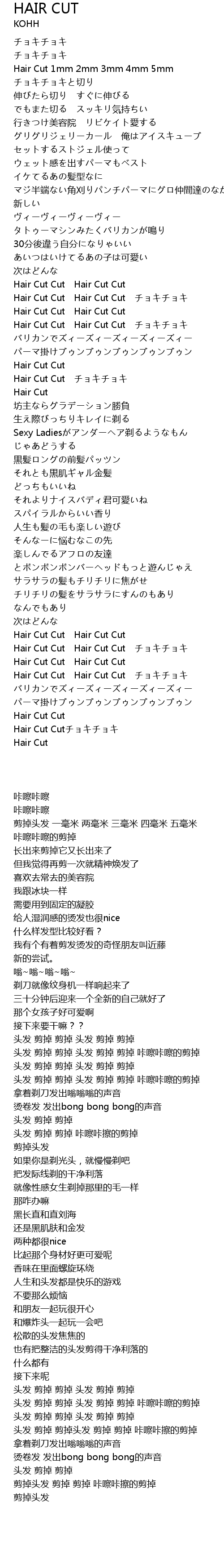 | [01:12.00] | Hair Cut Cut Hair Cut Cut |