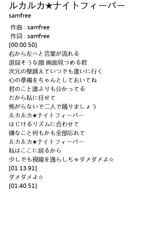 | [01:01.17] | ルカルカ★ナイトフィーバー |