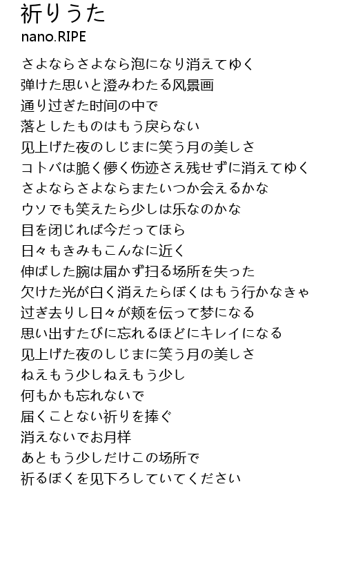 | [01:53.420] | 欠けた光が白く消えたらぼくはもう行かなきゃ |