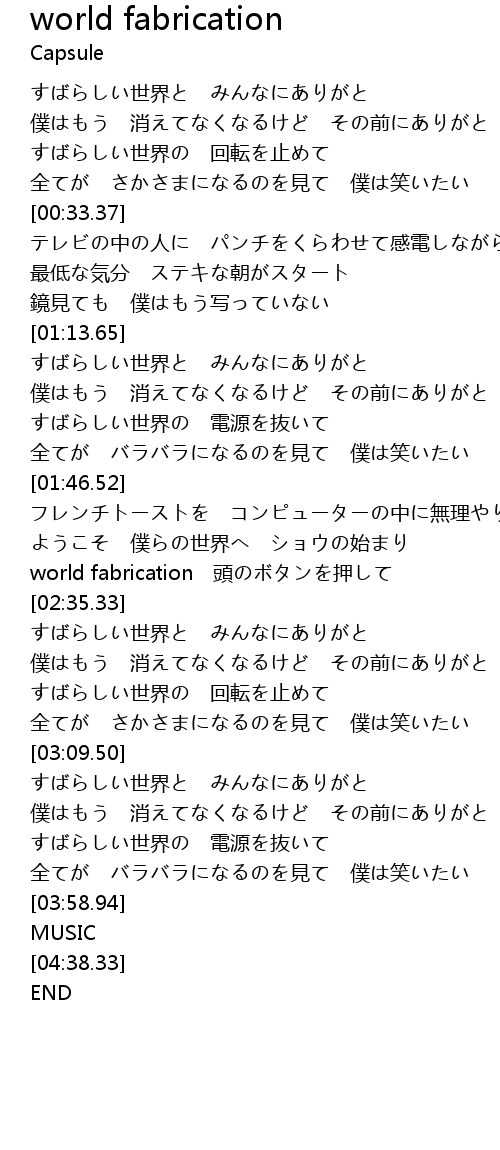 | [02:25.93] | world fabrication 頭のボタンを押して |