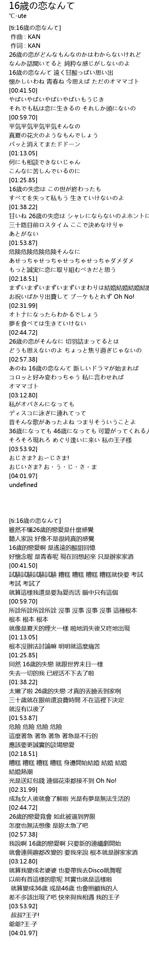 | [00:27.63] | 16 sui lian yuan gan suan si chu |