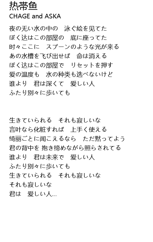 | Song | 热帯鱼 |
