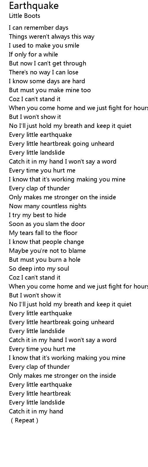 | [02:26.935] | Every little earthquake |