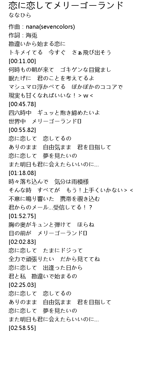 | [02:37.07] | 恋に恋して 恋してるの |