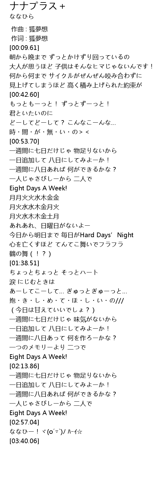 | [02:40.23] | 一日追加して 八日にしてみよーか! |