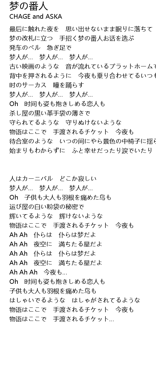| Artist | CHAGE and ASKA |