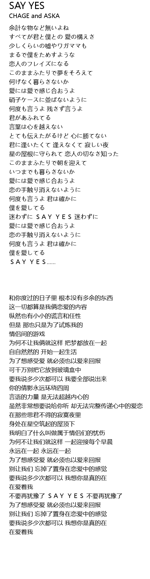 | Song | SAY YES |
