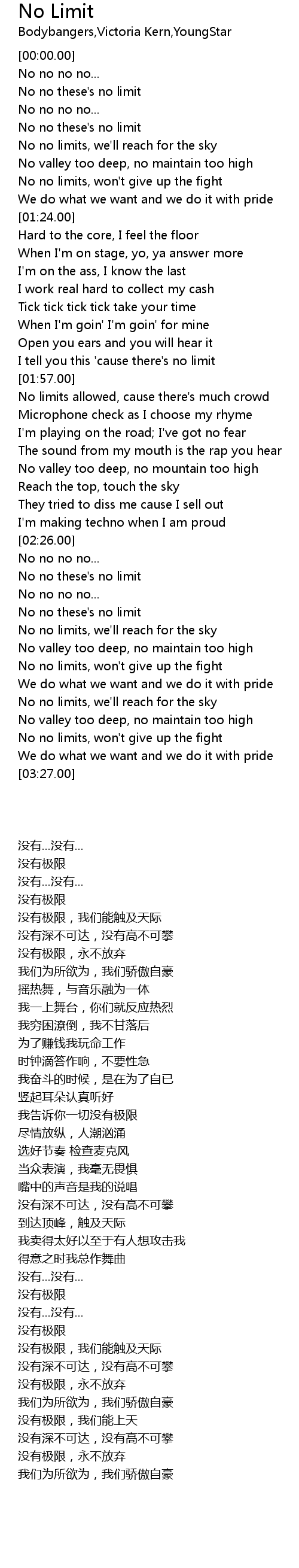 No no limits, won't give up the fight |