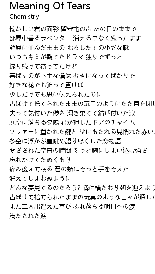 | 失って気付いた儚さ 渇き果てて錆び付いた涙 | |
