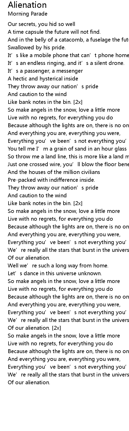 | [2x] | Of our alienation. |