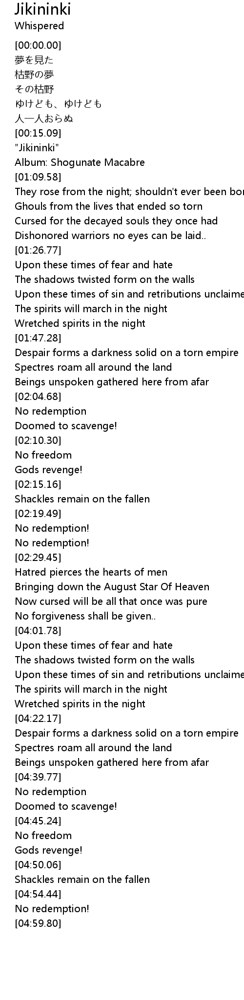 | [00:59.85] | " Jikininki" |