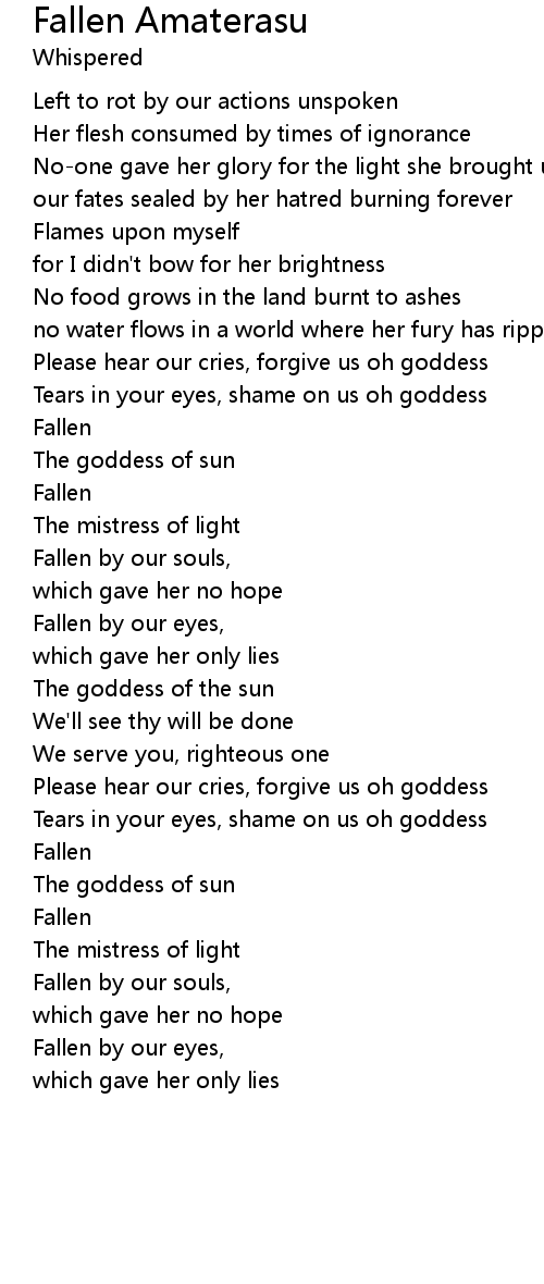 Tears in your eyes, shame on us oh goddess |