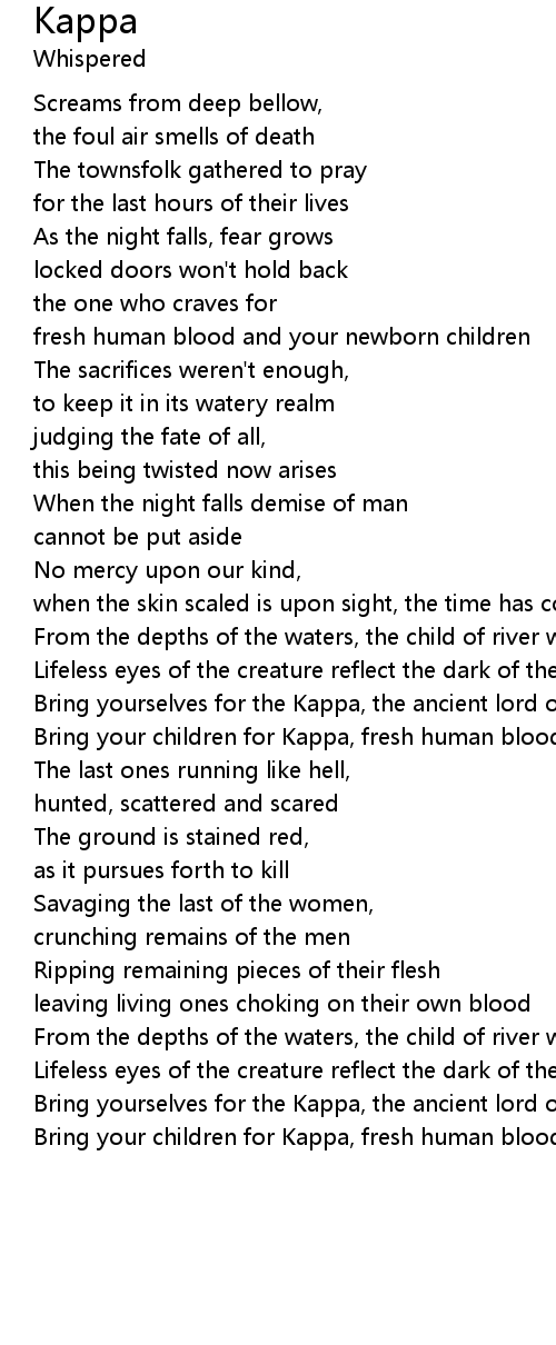 Bring your children for Kappa, fresh human blood for the Kappa |