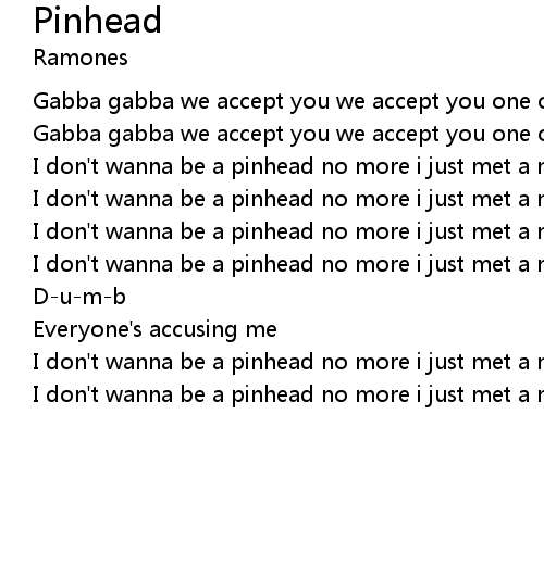 I don't wanna be a pinhead no more i just met a nurse that i could go for |