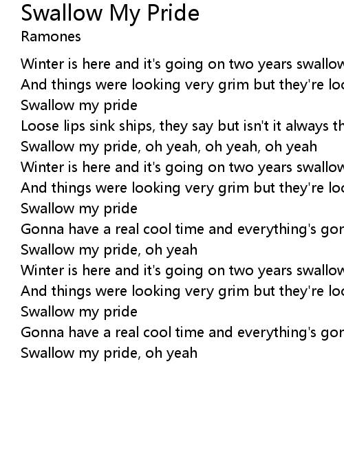 Swallow my pride, oh yeah, oh yeah, oh yeah |