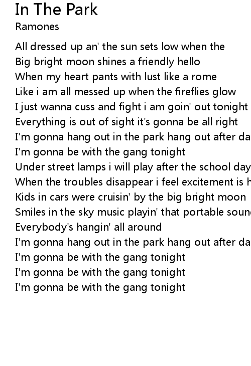 I'm gonna hang out in the park hang out after dark |