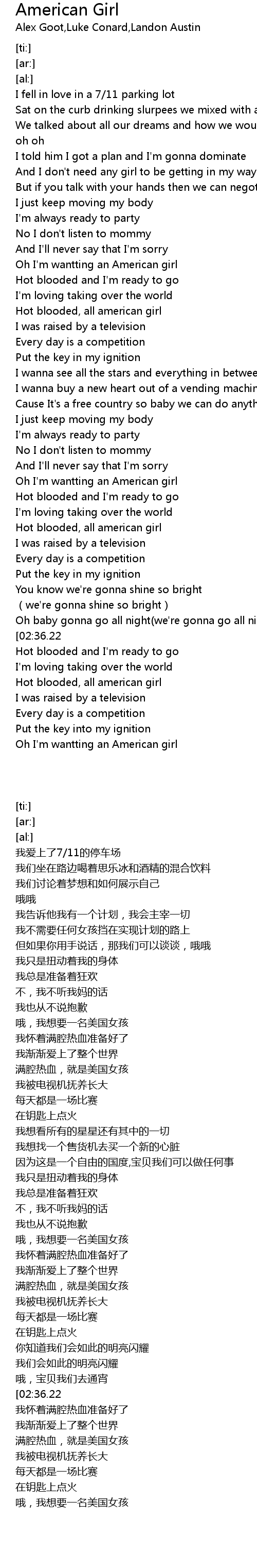 | [02:51.59][02:36.22] | Oh I'm wantting an American girl |