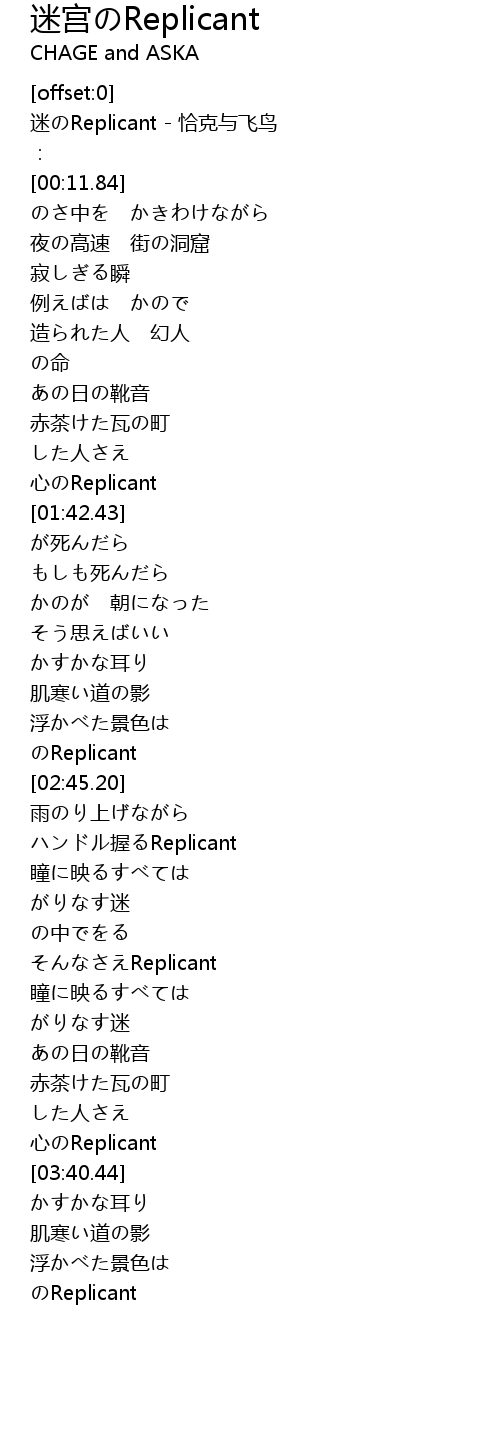 | [00:00.55] | 迷のReplicant - 恰克与飞鸟 |