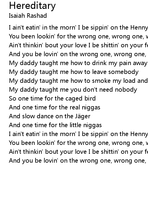 | [00:06.57] | I ain' t eatin' in the morn' I be sippin' on the Henny, Henny |