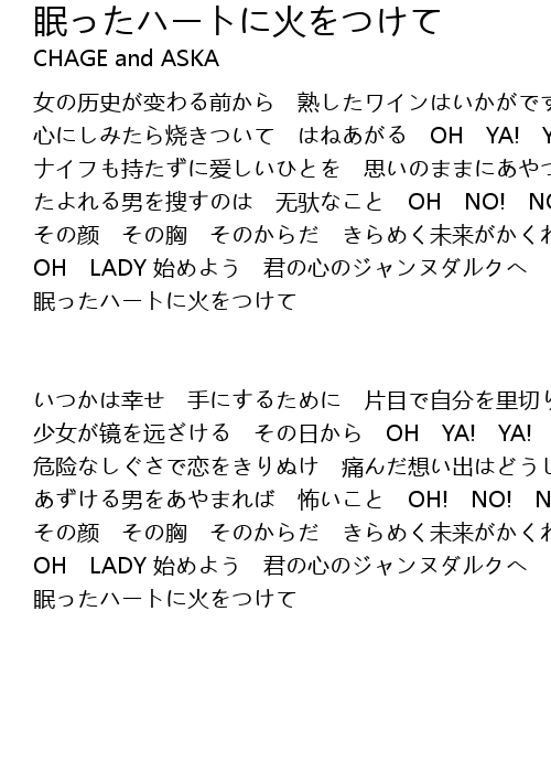 | 心にしみたら烧きついて はねあがる OH YA! YA! YA! | |