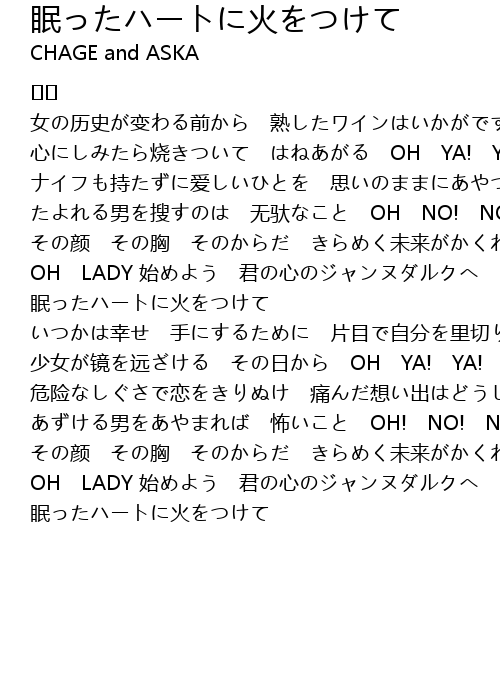 | 心にしみたら烧きついて はねあがる OH YA! YA! YA! | |