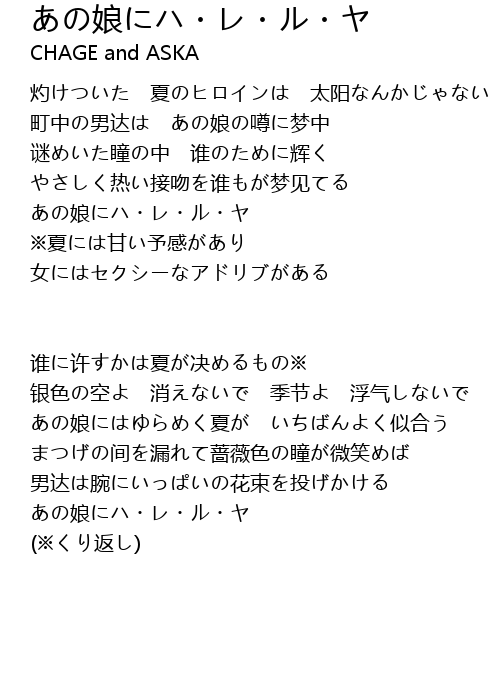 | Song | あの娘にハ・レ・ル・ヤ |