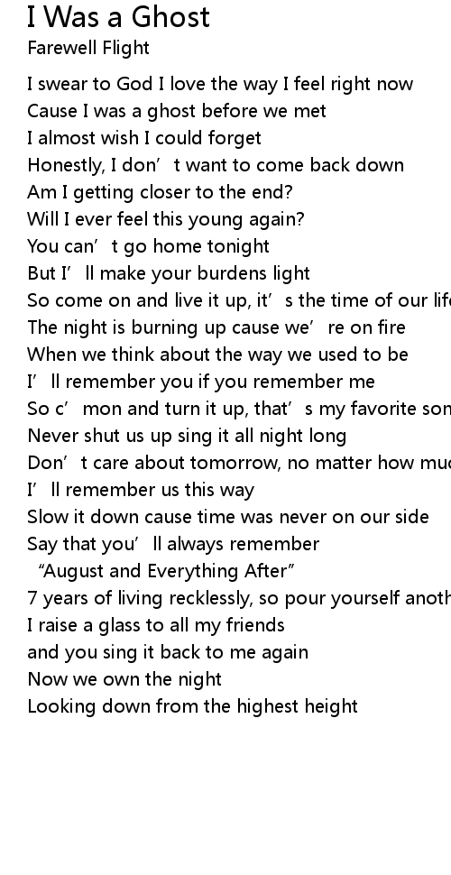 | Song | I Was a Ghost |