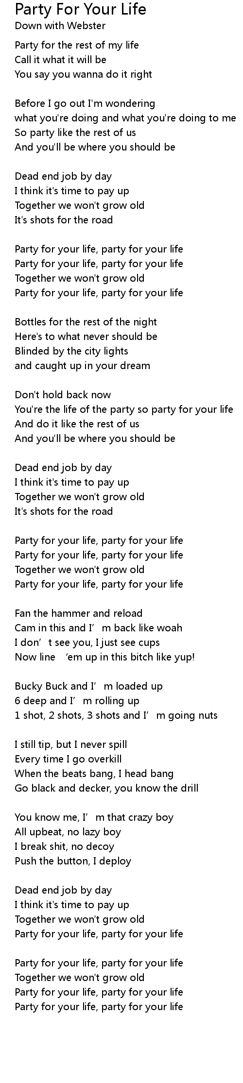 | Party for your life, party for your life | |