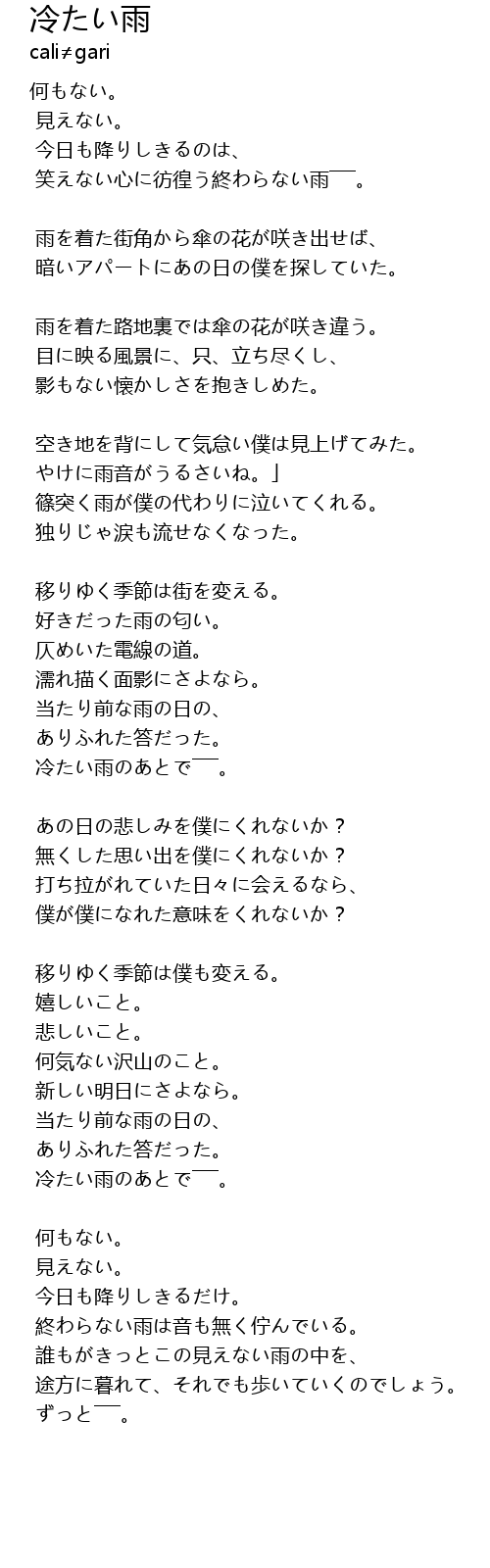 | 終わらない雨は音も無く佇んでいる。 | |
