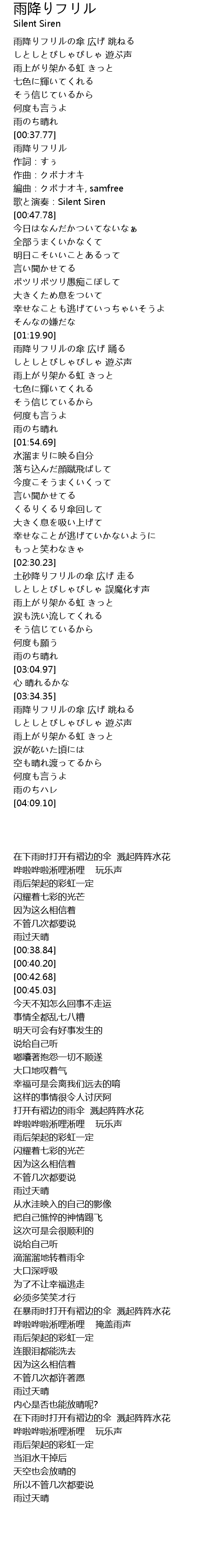 | [00:45.03] | gē yǎn zòu: Silent Siren |