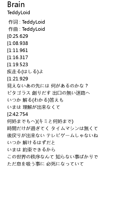 | [00:00.000] | zuò cí : TeddyLoid |
