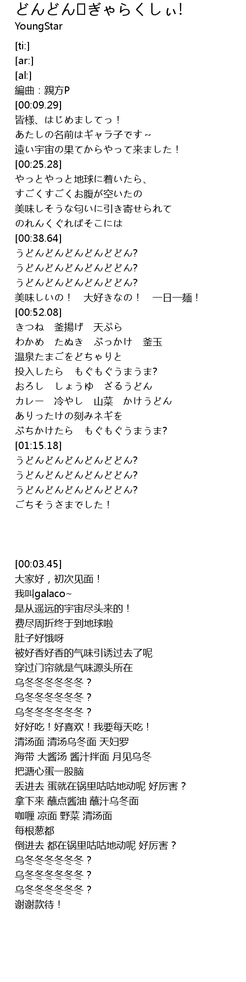 | [00:45.14] | うどんどんどんどんどどん? |