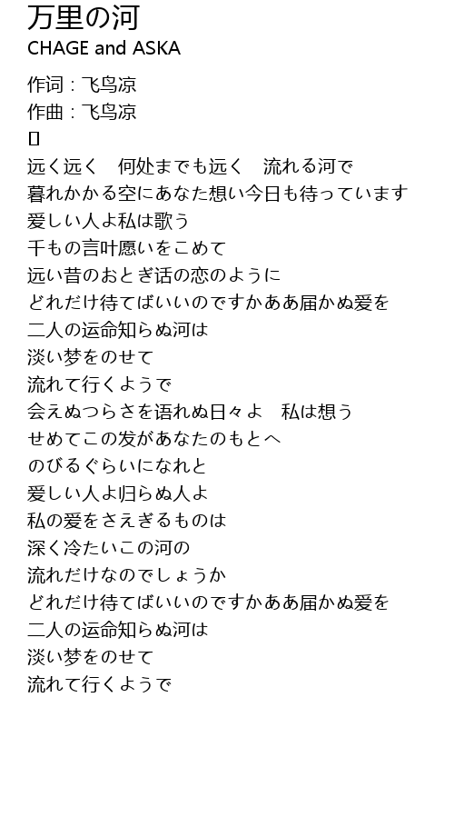 | 远く远く 何处までも远く 流れる河で | |
