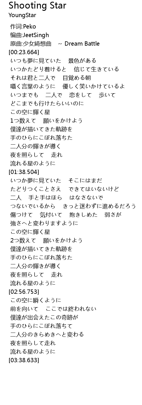 | [02:28.837] | 2つ数えて 願いをかけよう |