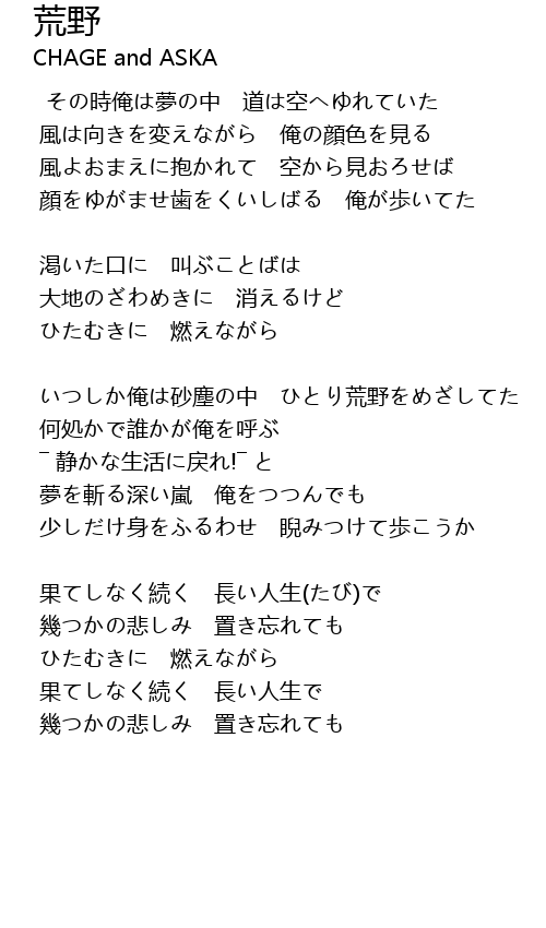 | いつしか俺は砂塵の中 ひとり荒野をめざしてた | |